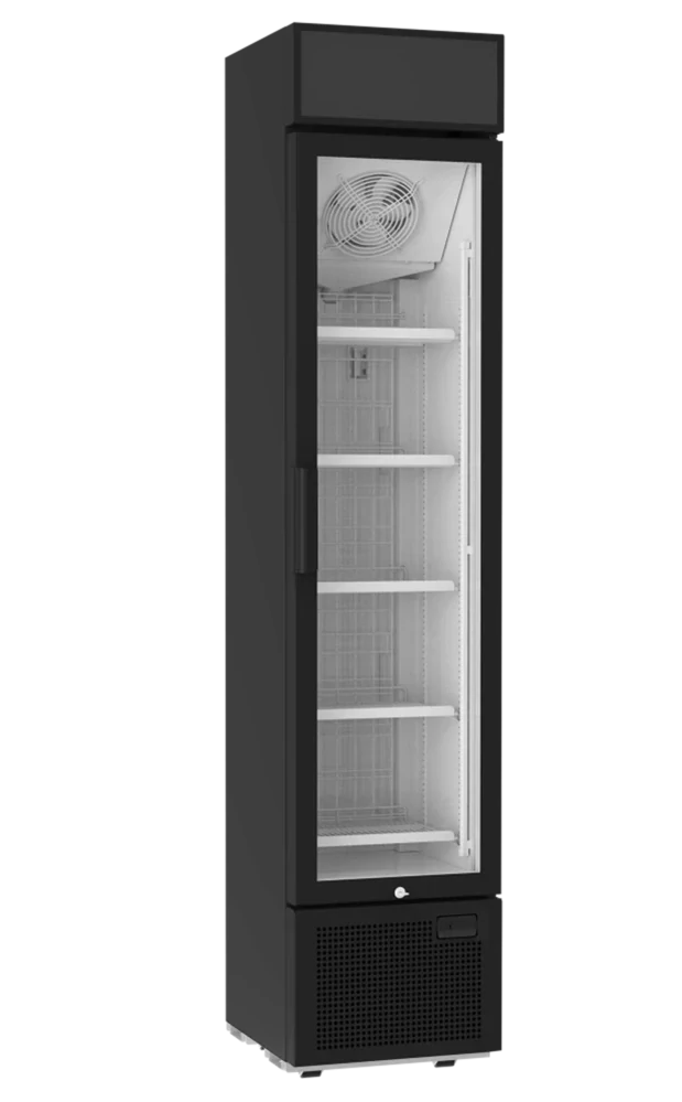 Tato úzká mrazicí skříň FSF má šířku pouze 435 mm, což ji činí ideální pro místa, kde máte omezený prostor pro vystavení mražených delikates. Je vybavena LED reklamním panelem, nastavitelnými policemi, vnitřním LED osvětlením a vyhřívanými prosklenými dveřmi pro vynikající vystavení produktů.
